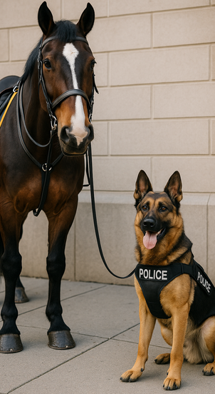 Service animals for detection, patrol or service roles - for use by the security cluster or private citizen.